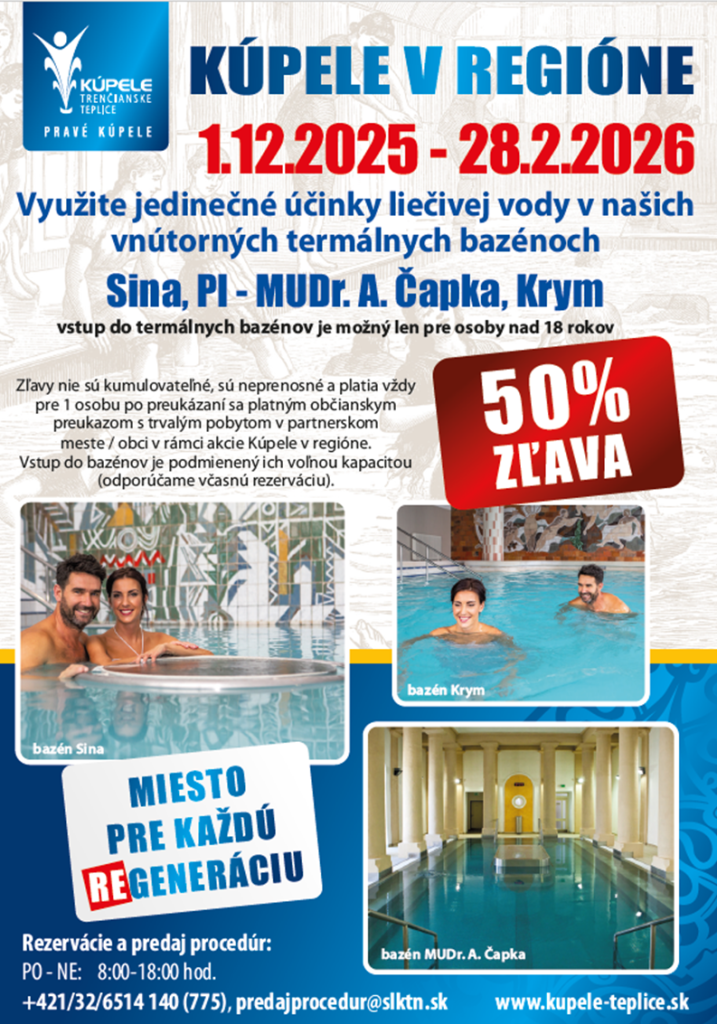 Aj tento rok si môžu obyvatelia s trvalým pobytom v obci ísť oddýchnuť do kúpeľov v Trenčianskych Tepliciach s 50% zľavou.